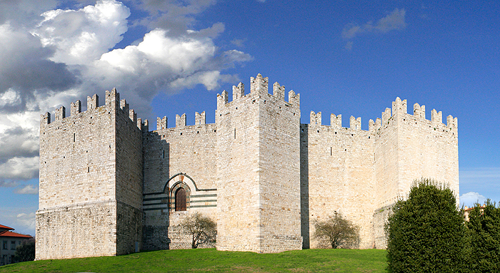 Unico esempio di architettura sveva nell'Italia centro-settentrionale, il Castello dell’Imperatore fu edificato dall'architetto siciliano Riccardo da Lentini fra il 1237 e 1248 per volere dell'imperatore Federico II di Svevia, che mai giunse a Prato. La struttura in alberese, è coronata da una merlatura ghibellina "a coda di rondine". Nel corso del XIV secolo il governo fiorentino trasformò l'edificio in presidio militare e prigione, collegandolo alle mura trecentesche attraverso un camminamento coperto: il Cassero. Il camminamento superiore lungo tre lati del perimetro permette di godere un magnifico panorama sulla città, le colline e la piana circostante. Le torri ospitano opere dell'artista contemporaneo Salvatore Cipolla. Il Castello è fiancheggiato dalla Basilica di Santa Maria delle Carceri, costruita sui resti di un'antica prigione da Giuliano da Sangallo. A pianta a croce greca, tipica del periodo rinascimentale, presenta sulla parte superiore una cupoletta di forme brunelleschiane con finestra a lanterna. Il rivestimento esterno (incompiuto) é in bianco alberese e serpentino verde. Al suo interno conserva un fregio in maiolica attribuito ad Andrea della Robbia e presso l'altare maggiore, il miracoloso affresco della Madonna delle Carceri fra i Santi Leonardo e Stefano (XIV secolo). Pregevoli le vetrate eseguite nel 1491 su disegno di Domenico Ghirlandaio.