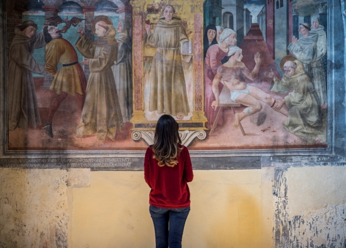 A lasciare meravigliati appena si entra sono gli splendidi affreschi di Benozzo Gozzoli, autore delle decorazioni della cappella di San Girolamo e di quelle dell'abside della Chiesa di San Francesco. Le Storie della vita di san Francesco (1452) sono tra i più importanti cicli rinascimentali conservati. Lungo il percorso, preziose raccolte d’arte: la pinacoteca, la cripta con le antiche cantine dei frati minori, la sezione dei reperti archeologici e frammenti lapidei ed, infine, gli spazi dedicati alle mostre d’arte contemporanea.