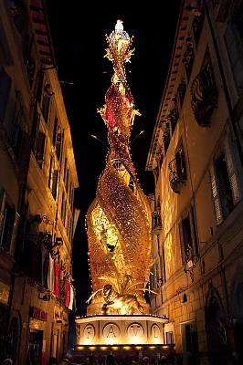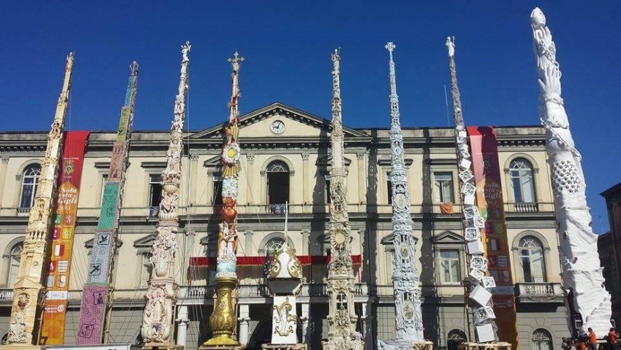 Le processioni cattoliche che prevedono strutture da portare a spalla si svolgono in tutta Italia, ma sono particolarmente articolate in quattro centri storici: Nola, con una processione di otto obelischi di legno e cartapesta che commemorano il ritorno di San Paolino; Palmi, dove i portatori trasportano una complessa struttura in onore di Nostra Signora della Sacra Lettera; la Faradda dei Candelieri di legno di Sassari; la Macchina di Santa Rosa a Viterbo commemora la patrona della città. Il comune progetto di trasporto prevede una condivisione equa e coordinata dei compiti e una distribuzione equilibrata dei pesi e unisce le comunità nel mutuo rispetto, cooperazione e sforzo congiunto, tanto da generare lo sviluppo di una rete di scambio tra coloro che condividono questo patrimonio culturale. Queste celebrazioni richiedono il coinvolgimento di musicisti e cantanti, oltre che artigiani per costruire le strutture e creare gli abiti. Le comunità festive si affidano alla trasmissione di tecniche e conoscenze per ricreare le strutture ogni anno, processo che aiuta la continuità culturale e rinforza il senso di identità.