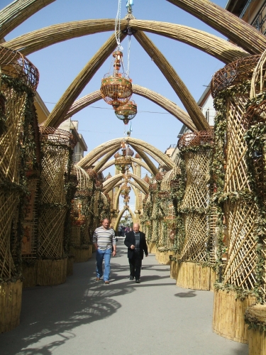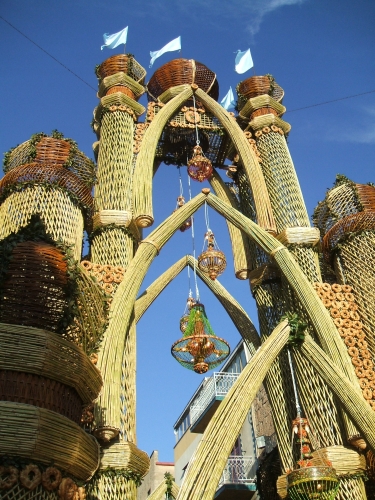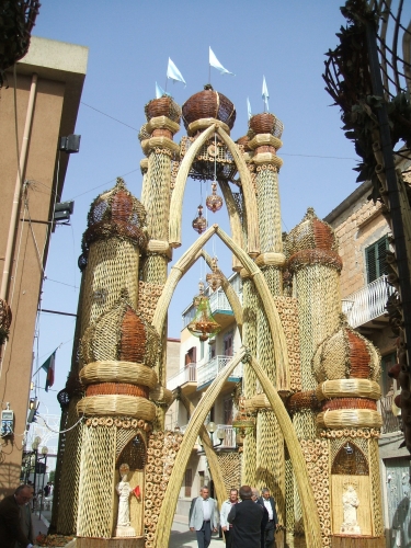 Le tradizioni popolari da sempre marcano quella linea che tiene uniti passato presente e futuro di un paese. Nella memoria, che dal padre arriva sino al figlio, c’è la voglia di voler fissare le proprie radici culturali, antropologiche e sociali; è il tramandare le tradizioni popolari del proprio paese natio alle generazioni future, sembra uno dei modi possibili perché ciò accada. “Il trapasso tra la morte e la vita; il passaggio tra la stagione invernale e la stagione del risveglio; tra l’afflizione e la speranza; tra il dolore e la purificazione dello spirito; tra la tristezza e la gioia.” Queste parole sembrano rappresentare nel migliore dei modi una delle tradizioni più affascinanti della Sicilia, la Festa degli Archi di Pasqua, che con i suoi colori e i materiali propri della natura sembra dare un significato ancora più profondo al periodo in cui viene ad essere rappresentata. La tradizione degli Archi di Pasqua, unica nel suo genere, ebbe origine nel ‘700 quando i grandi proprietari terrieri della famiglia Joppolo, venendo in visita a San Biagio Platani (durante il periodo pasquale) al fine di riscuotere tasse e gabelle, erano accolti in maniera “Trionfale” dalla folla con a capo il Governatore, il Clero e i Giurati; a questo periodo risale anche la nascita delle due Confraternite “Li Madunnara” e “Li Signurara”, che avevano le proprie sedi rispettivamente nella Chiesa Madre e nella Chiesa del Carmine. Attualmente i presidenti delle due Confraternite sono Michelangelo Favatella (Madunnara) e Giuseppe Savarino (Signurara). La tradizione degli Archi d i Pasqua si è protratta fino ai giorni nostri. Un lavoro molto impegnativo è quello della preparazione. Alcuni mesi prima i componenti delle Confraternite si riuniscono per abbozzare i progetti da sottoporre alle rispettive assemblee. Una volta scelto il tema si passa alla fase operativa. Separatamente ed in gran segreto Madunnara e Signurara costituiscono dei sottogruppi ai quali viene affidato il compito di creare le meravigliose opere artistiche che dalla mattina di Pasqua sono esposte lungo Corso Umberto I. Per la realizzazione di tali opere si utilizzano diversi materiali: si intessono con canne, salici, e agave i pannelli del viale e dell’entrata; si compongono i mosaici con cereali, vetro, pane e pasta; si addobbano le nimpe (lampadari) con datteri, pane, pasta, corda e mais. Preziosi capitelli di pane e sculture, “scherzi” di fontane a tema stanno a significare la frenesia e la piacevole follia di tutto il lavoro di mani esperte che c’è dietro. Osservati più attentamente conducono in un viaggio di tradizioni e memoria che pare, non avere limiti. In questo contesto si crea una “amichevole” rivalità tra le due Confraternite; questa conflittualità diventa un elemento di crescita capace di trasformare radicalmente lo spazio urbano che viene utilizzato durante la manifestazione degli Archi di Pasqua. “L’incontro” rappresenta la resurrezione di Cristo, la vittoria della vita sulla morte. In riferimento a questo evento gli Archi, completamente composti da materiali propri della natura, rappresentano il risveglio della stessa dopo il lungo e quasi, oserei dire, “mortale inverno”. L’aria che il sabato si respira in Corso Umberto I è di gioia e allegria, tra applausi e auguri tutto sembra profumare di gioia e di vita. Il fatto di essere nati a San Biagio Platani preclude in sé l’amore per l’arte, per la cura dei particolari e per la voglia di stare insieme.